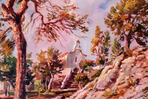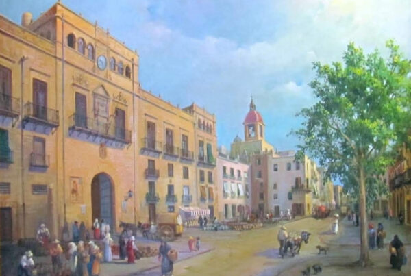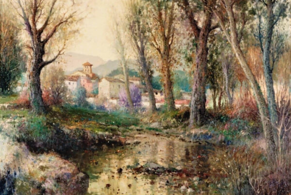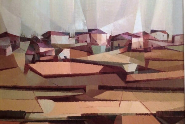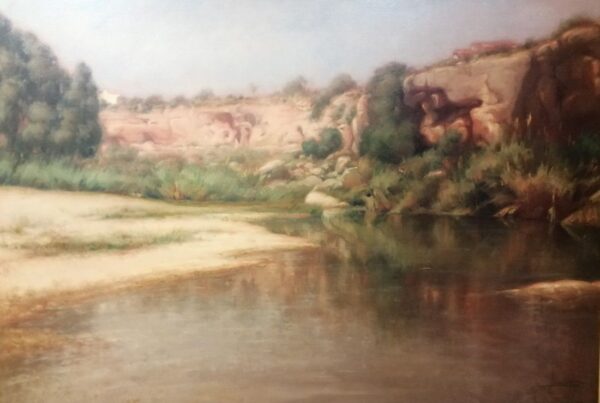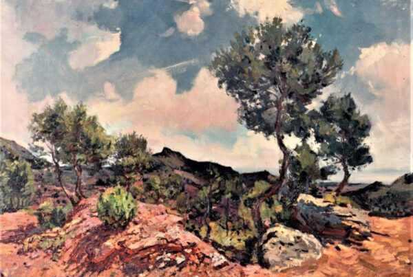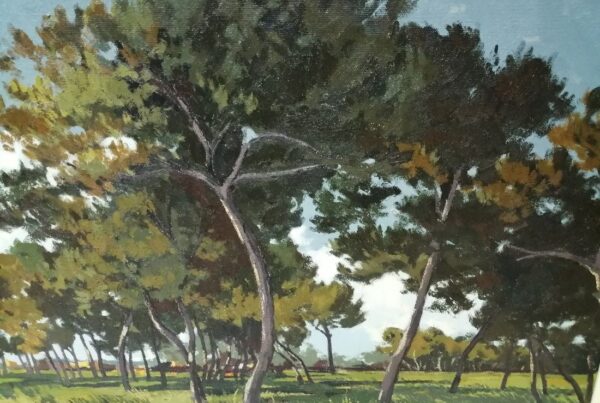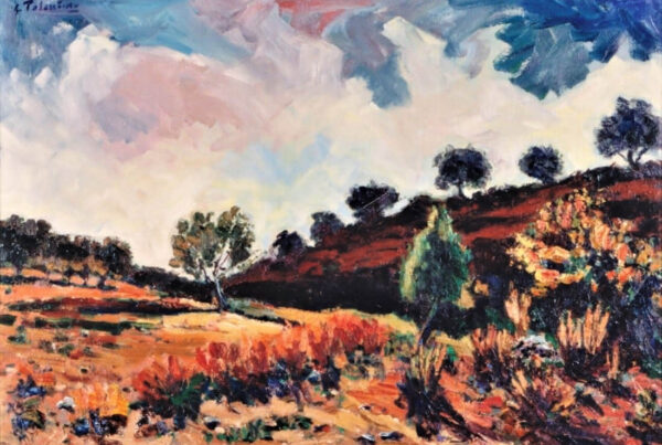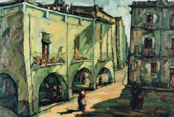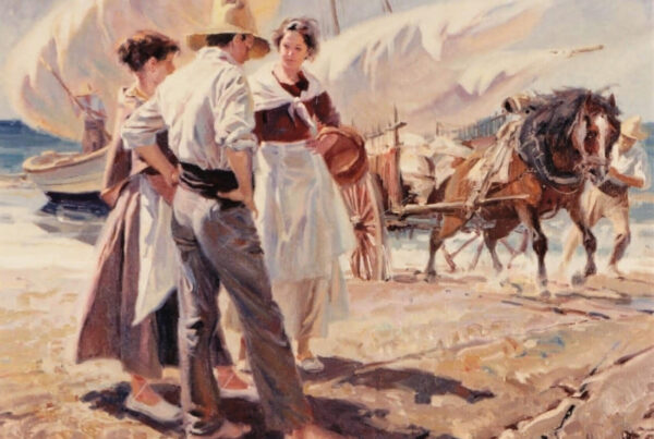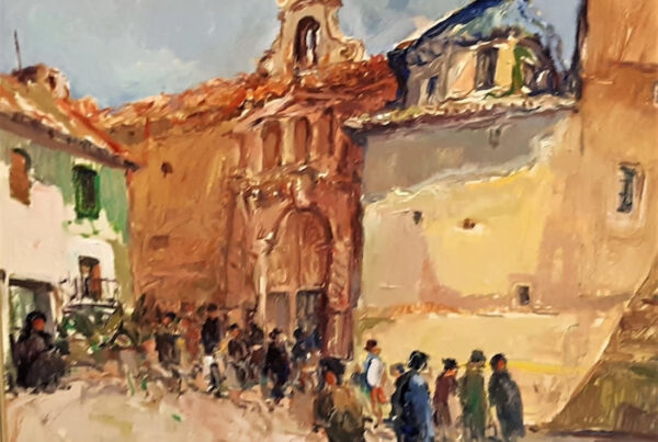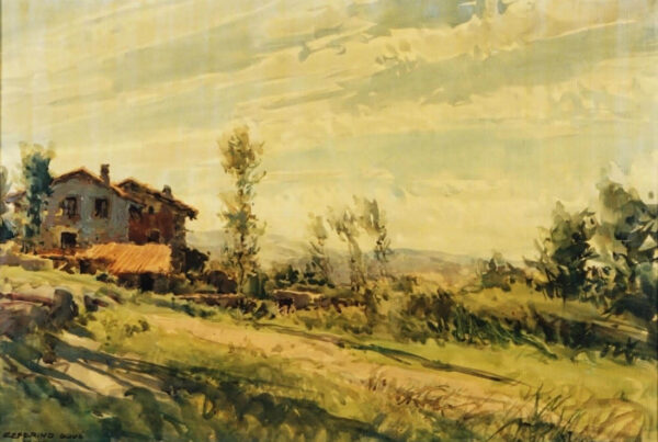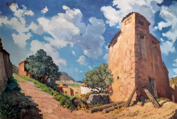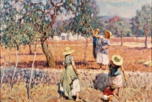 La obra de Conrado Meseguer nos presenta las labores cotidianas en el campo de la Ribera Baixa, que tan bien conoció el artista trabajando junto a su padre. En 1961 inicia su carrera con la serie Als que sentiren la terra, donde se aprecia el amor que profesa hacia las gentes y paisajes de su tierra natal, y que seguirá presente a lo largo de toda su carrera. En un estilo realista, con clara influencia de la luz de Sorolla, el pintor nos acerca a su entorno.